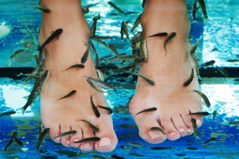 A fish spa involves dipping the feet in a tub of water filled with small fish called “Garra Rufa”. Garra Rufa is also known as “Doctor Fish”.
